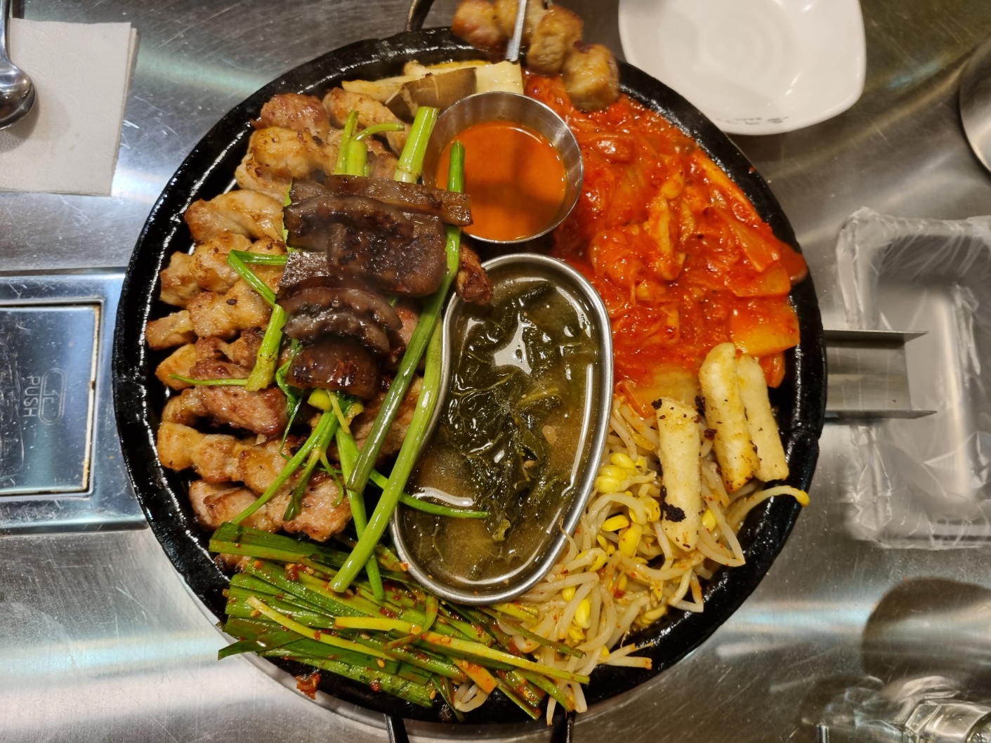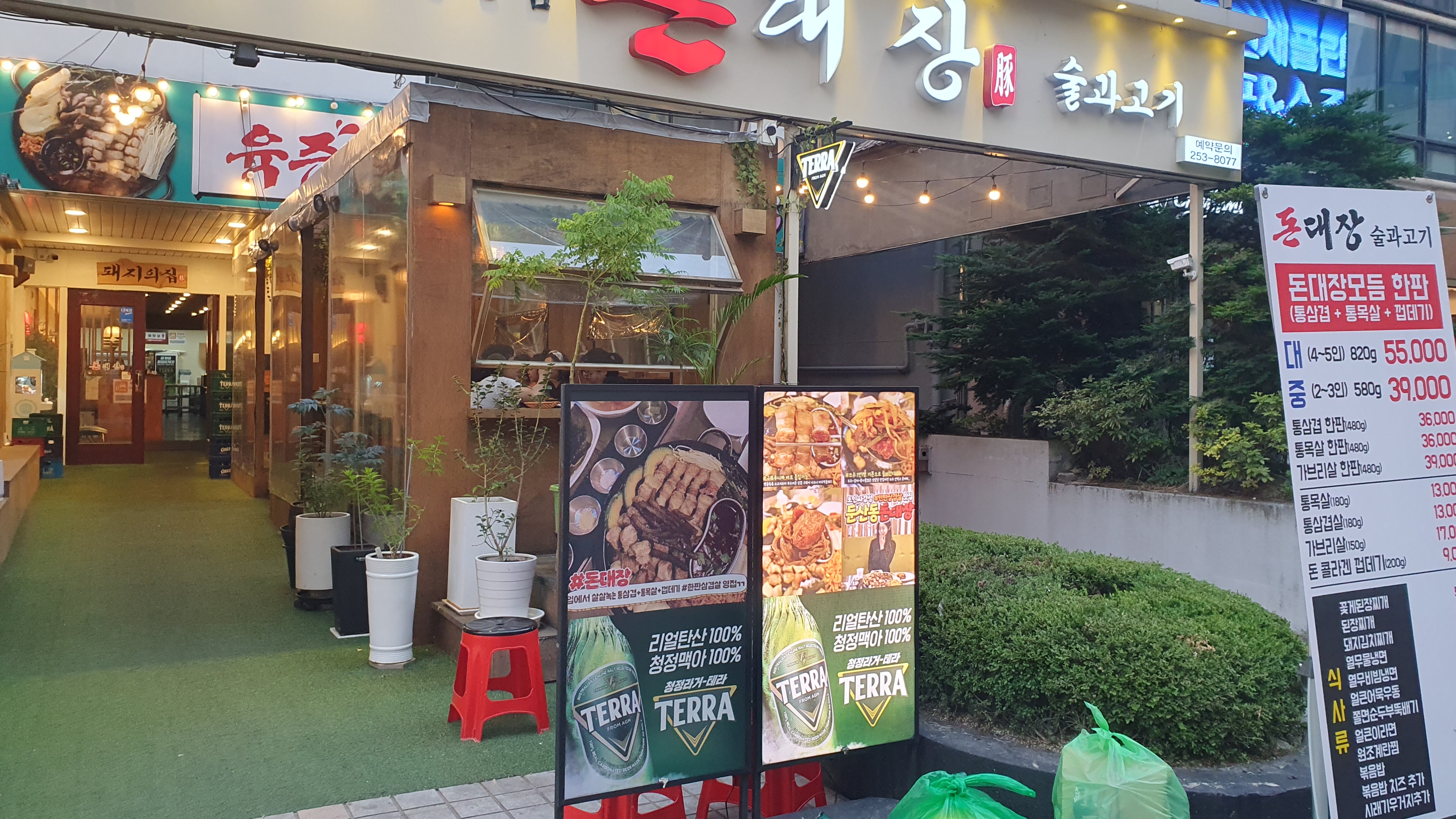 대전 둔산 갤러리아 백화점 뒷편에 있는 돈대장은 모듬 한판이 구워서 나온다. 직접 고기를 굽지 않으니 몸이 무지 편하다ㅎㅎ 고기도 전문가가 직접 구워주니 더욱 맛있게 먹을 수 있는 곳이다. 내/외부에서 먹을 수 있는 공간이 있어서 분위기에 따라 식사가 가능하다.