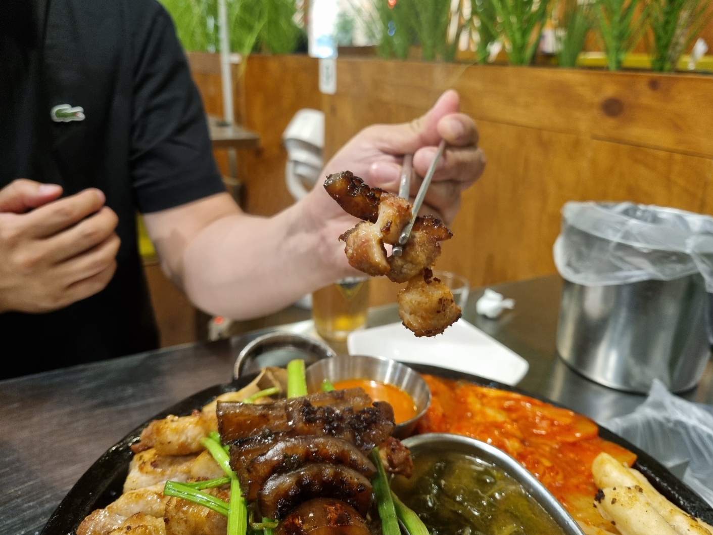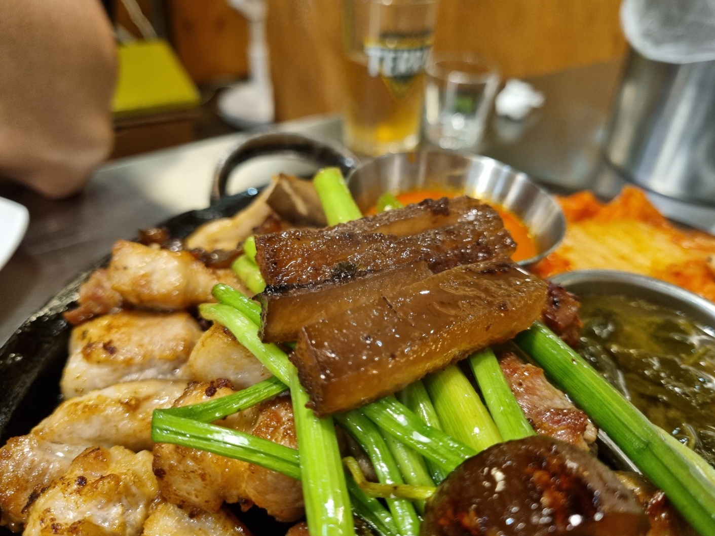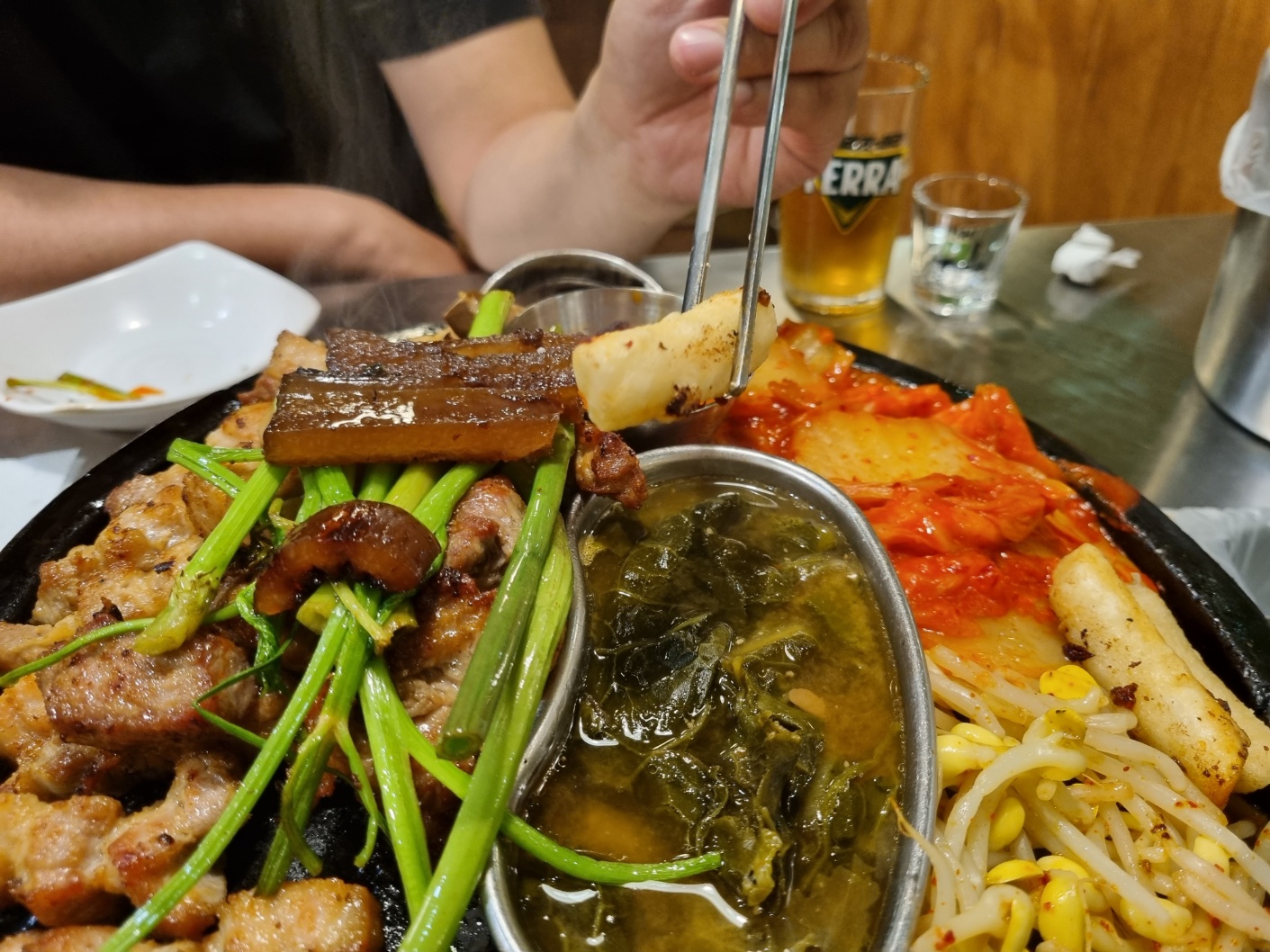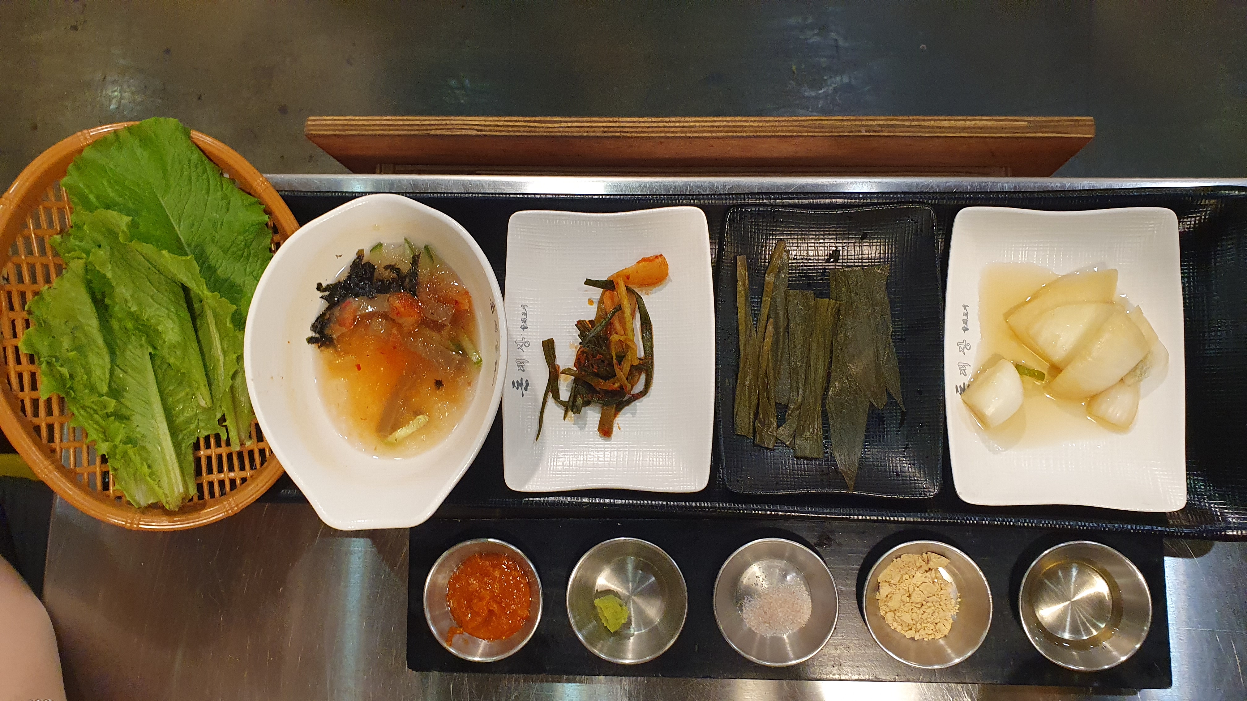 욕심에 고기를 많이 집다보니 사진은 참 못생기게 나왔다. 고기가 참 불안하게 나왔다. 그래도 맛은 맛있는 맛ㅎㅎ 고기가 잘 구워져서 노릇하고 고소한 맛이 참 좋았다. 찍어먹는 소스도 많아서 다양한 맛을 즐길 수 있었다~