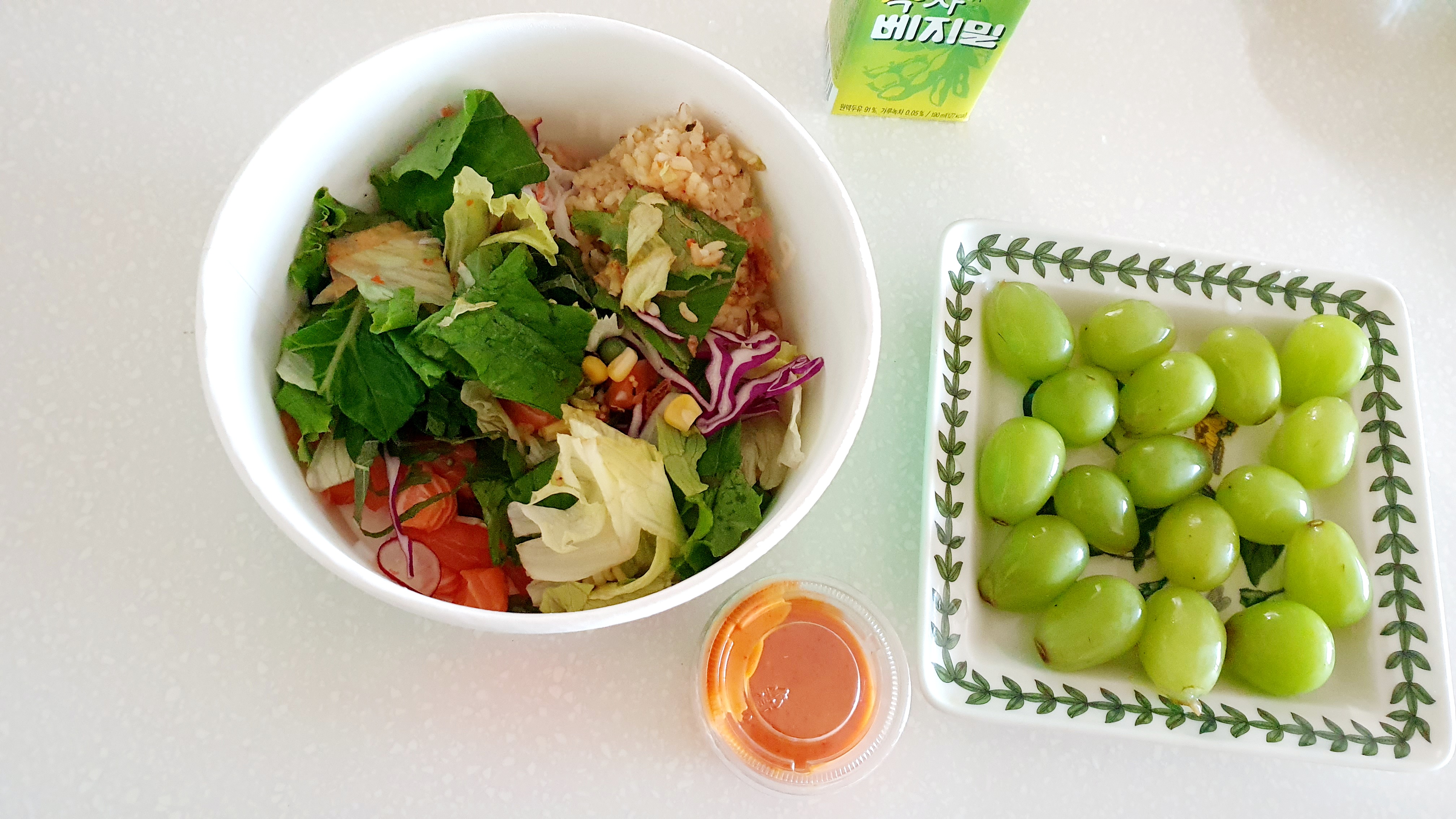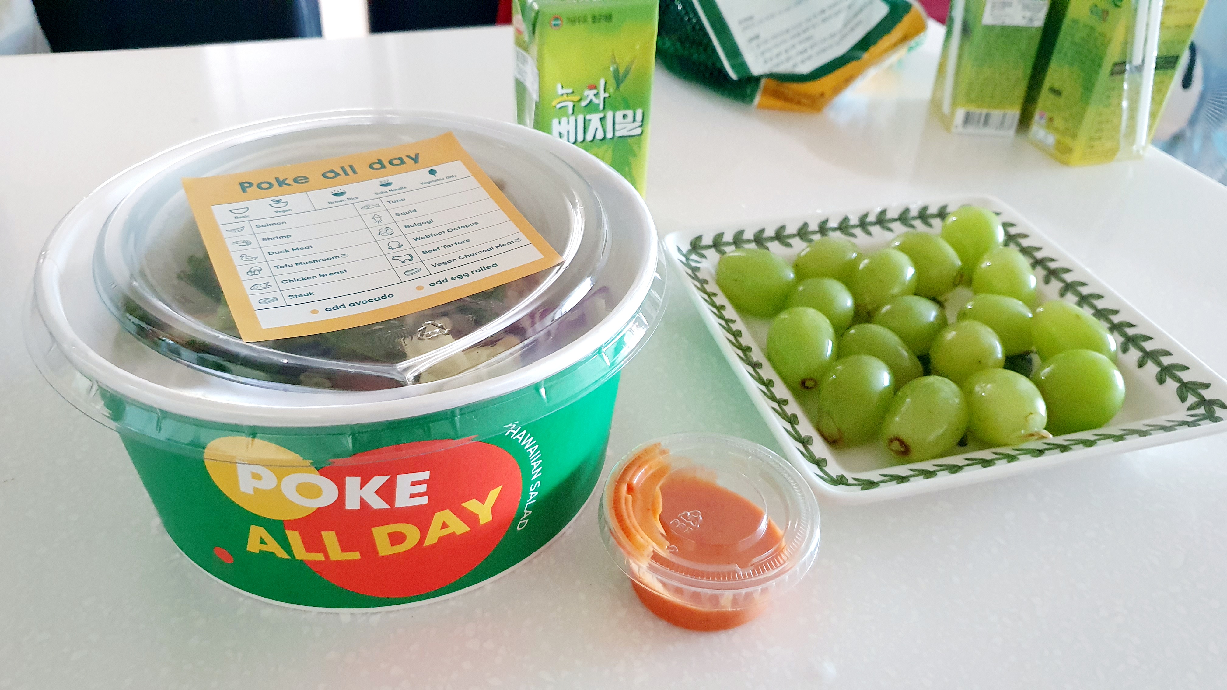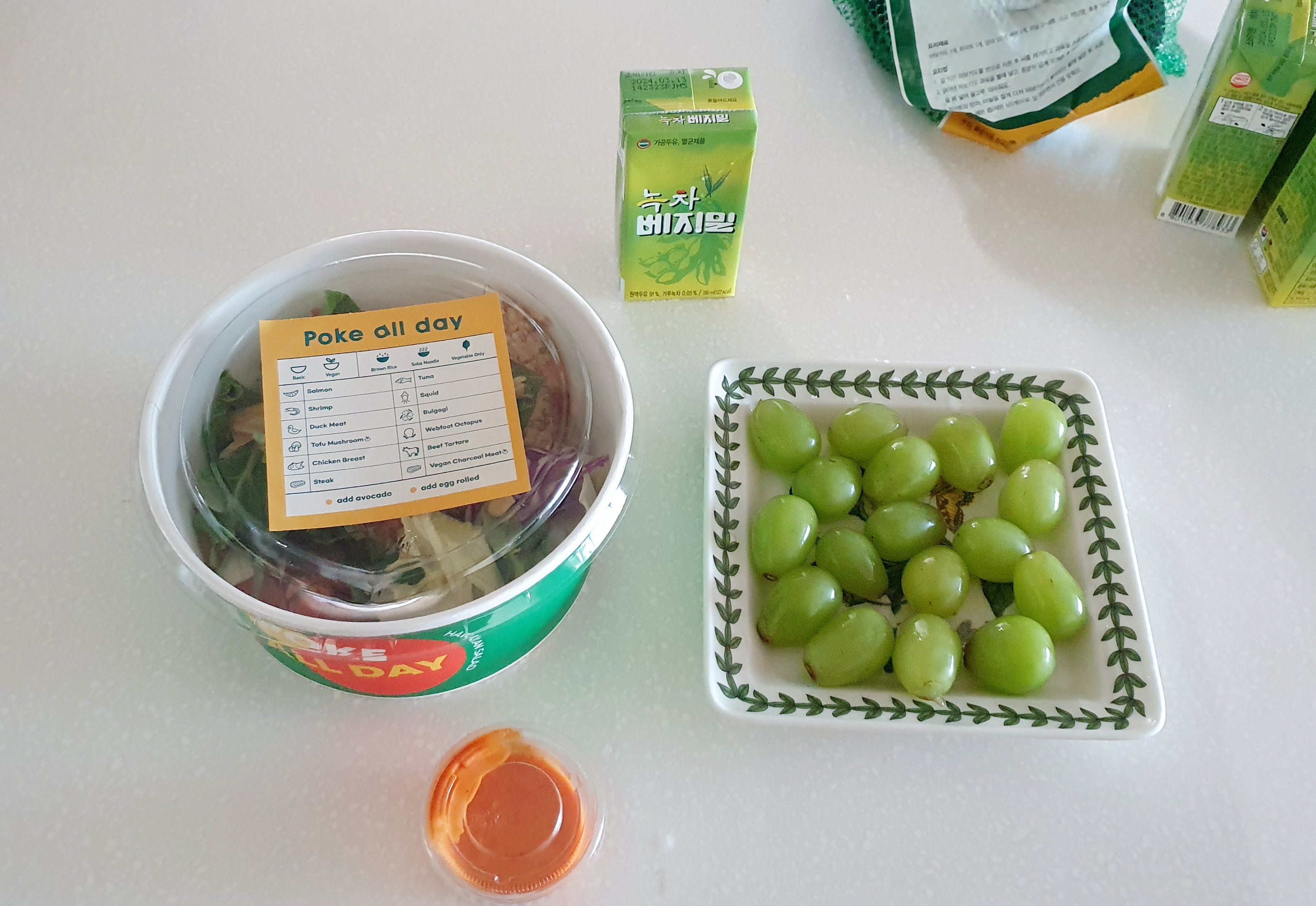 물론 샤인머스켓과 두유는 집에 있는 것을 포케와 함께 사진을 찍었다. 보기 좋은 포케가 먹기에도 좋을 테니 말이다^^