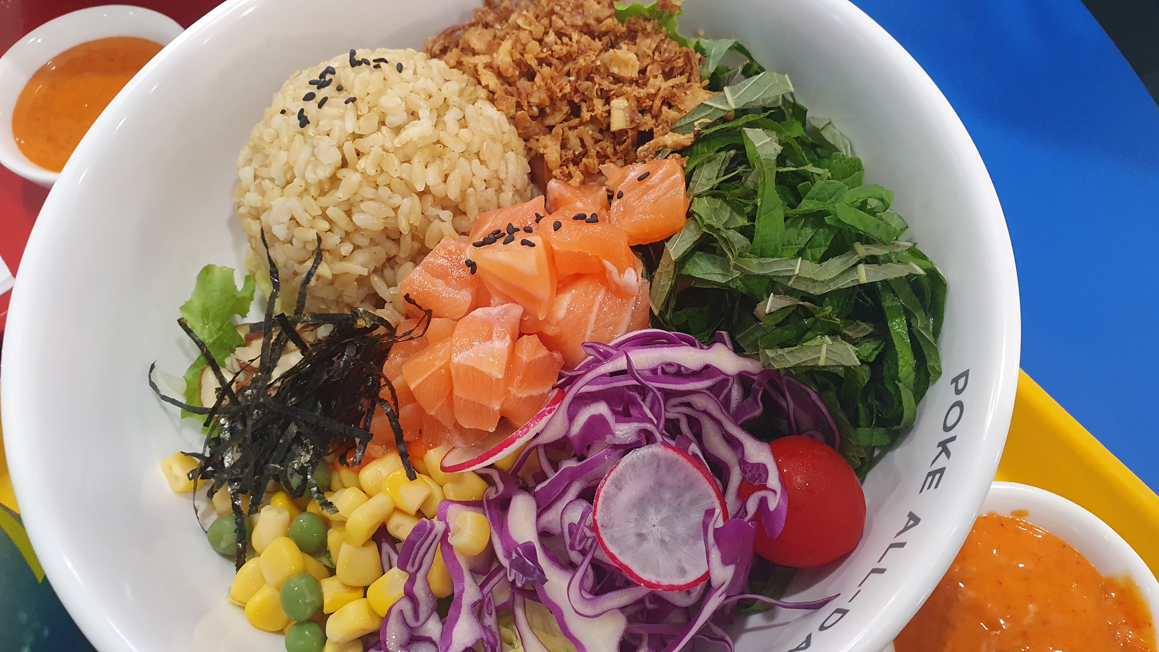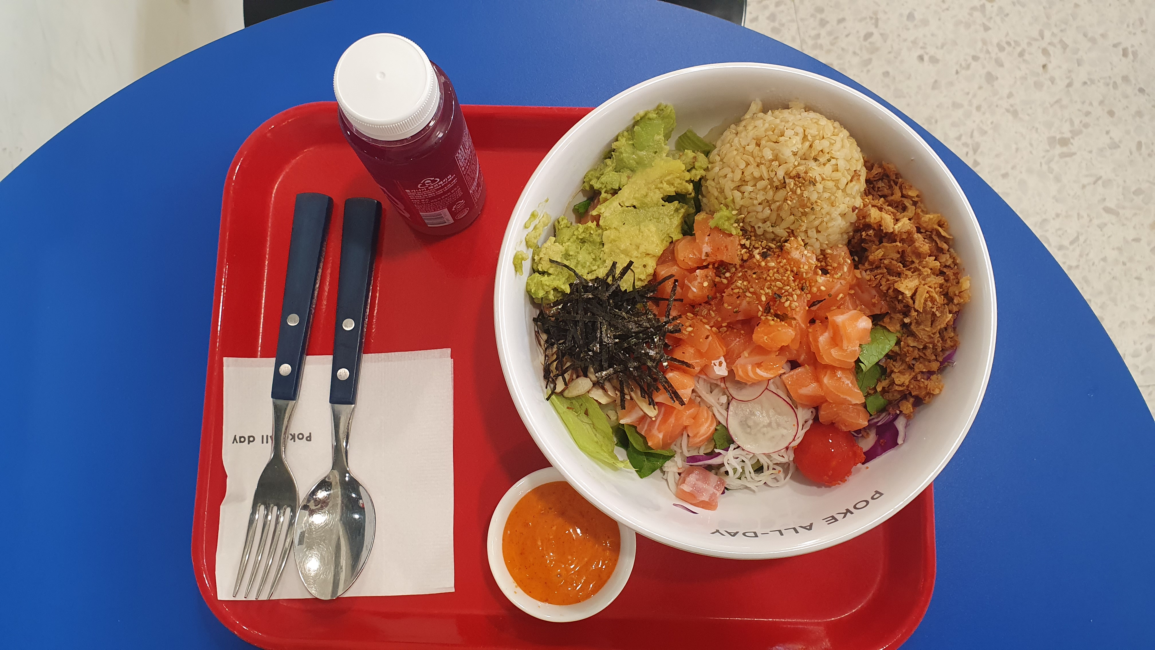 조금 기다리니 포케가 나왔다. 포케는 하와이식 샐러드라고 하는데 사 먹기는 처음이다. 샐러드에 현미밥이 있어서 든든히 먹을 수 있는 게 장점인 것 같다.