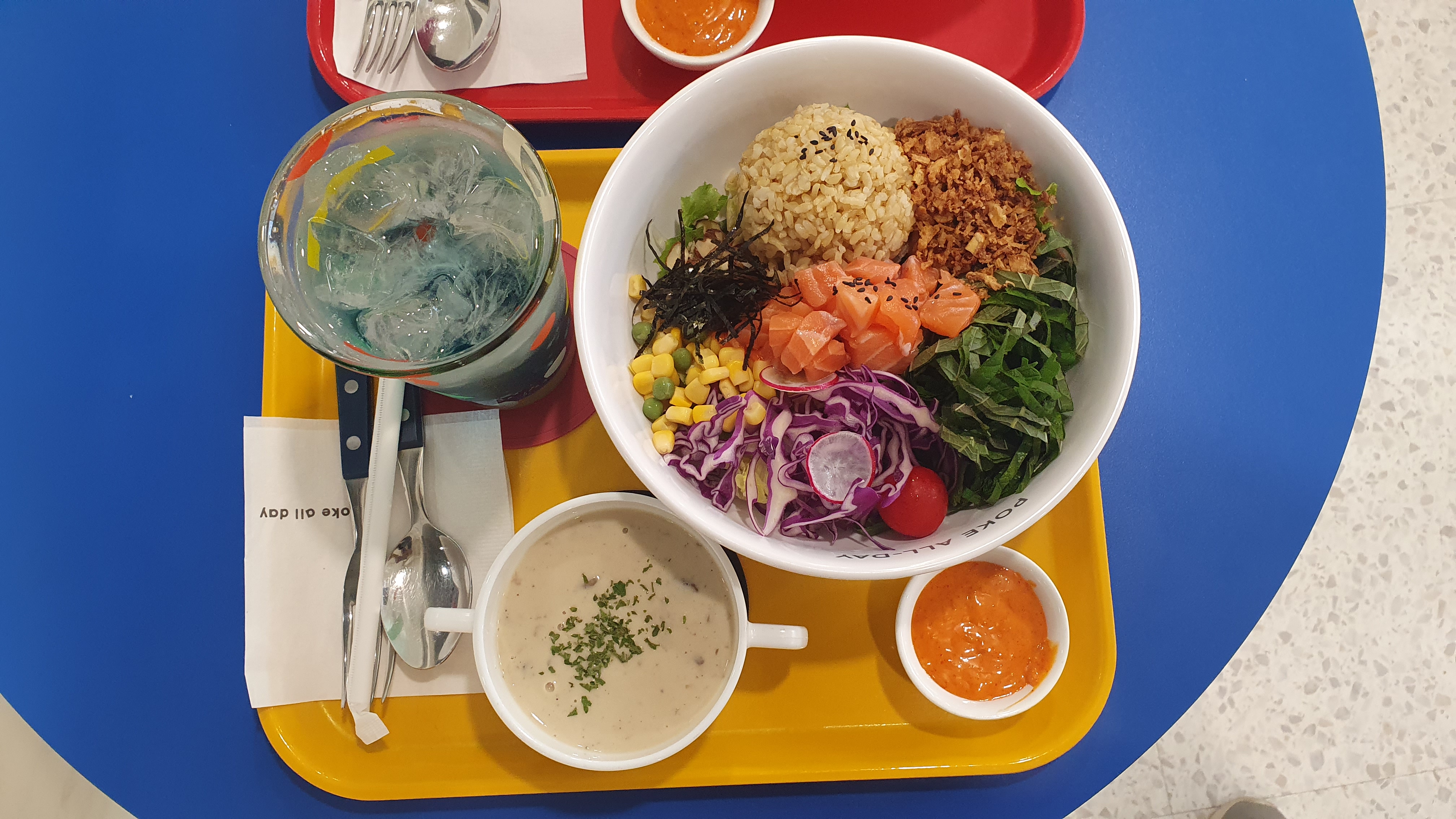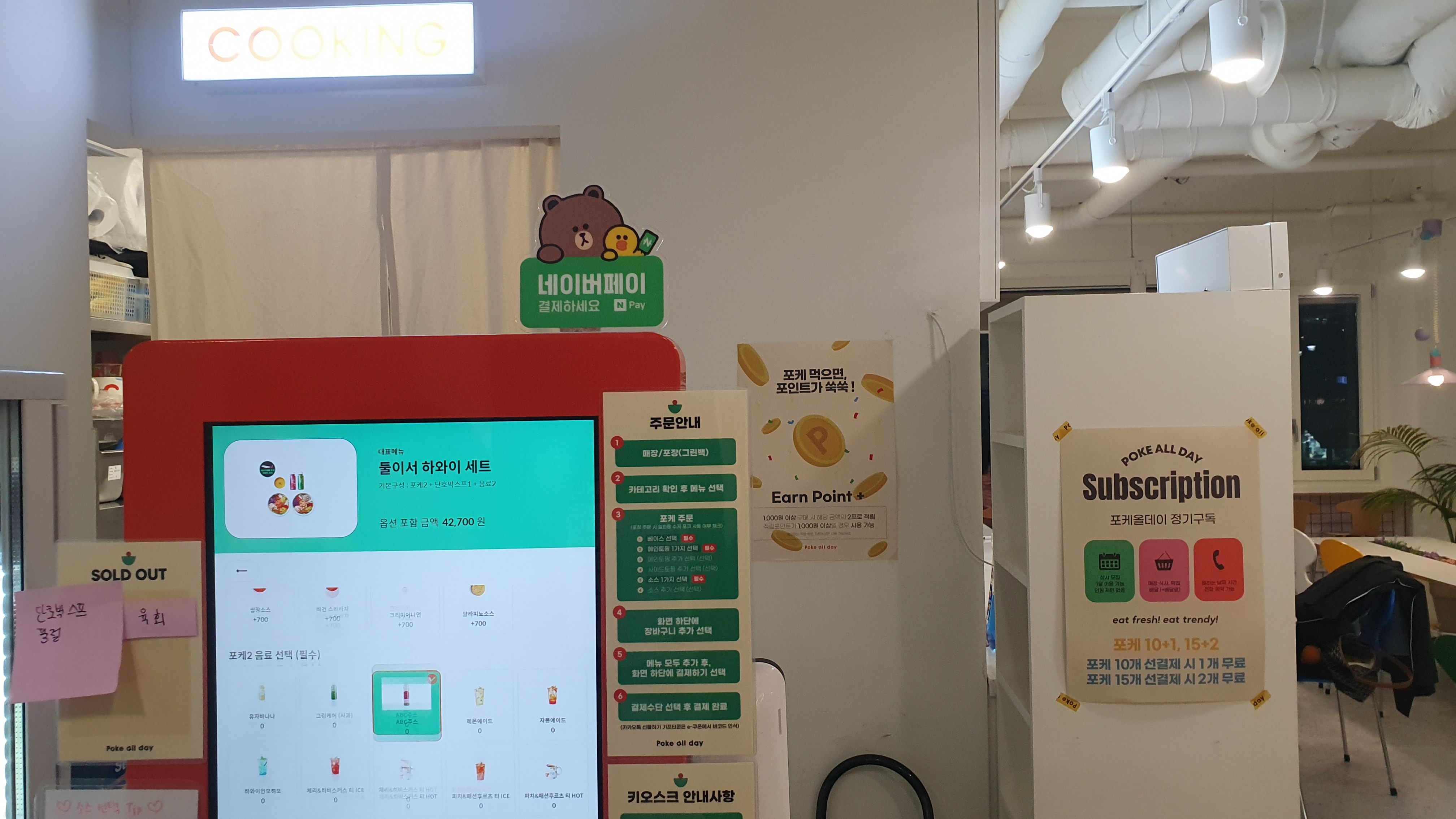 주문은 키오스크로 하면 된다. 내가 선택해서 먹는 포케를 표방하다 보니 선택할게 많아서 정신이 없었다. 내가 주문한 메뉴는 포케 2인 + 수프 + 음료 2잔 = 36000원인 포케 세트를 시켰다. 비싸기도 적당하기도 한 것 같은 가격이다. 그게 작전이기도 한 듯하다.