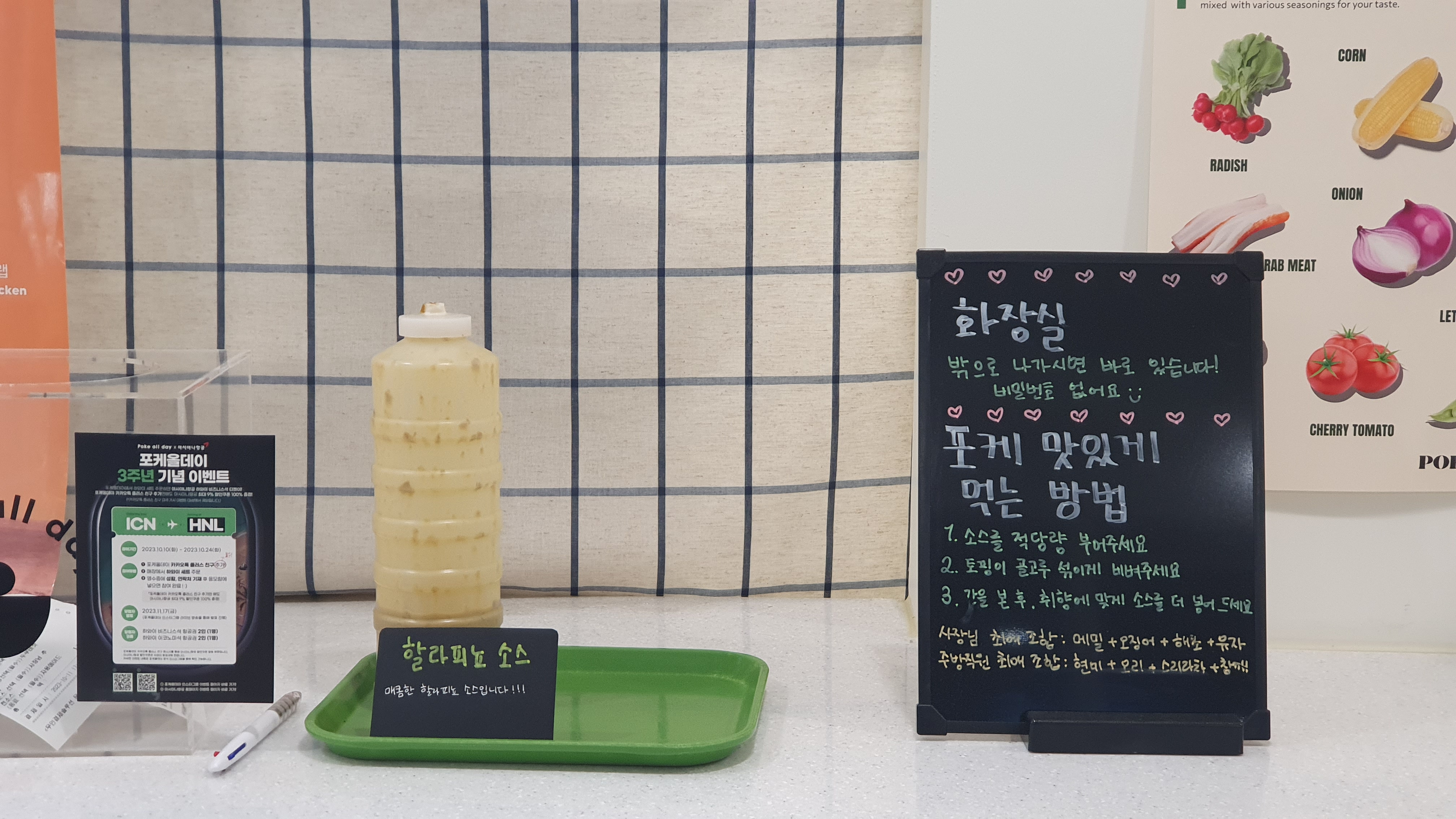 포케를 주문하면 음식을 가져가고 먹으면 반납함에 넣으면 된다. 요즘은 이게 당연한 문화가 돼버렸는데, 당연하지 않은 게 당연한 게 당연한 건가 생각해 본다. 그렇다고 가격은 저렴치 않으니;; 아르바이트비 청구해야 할 판이다ㅋ