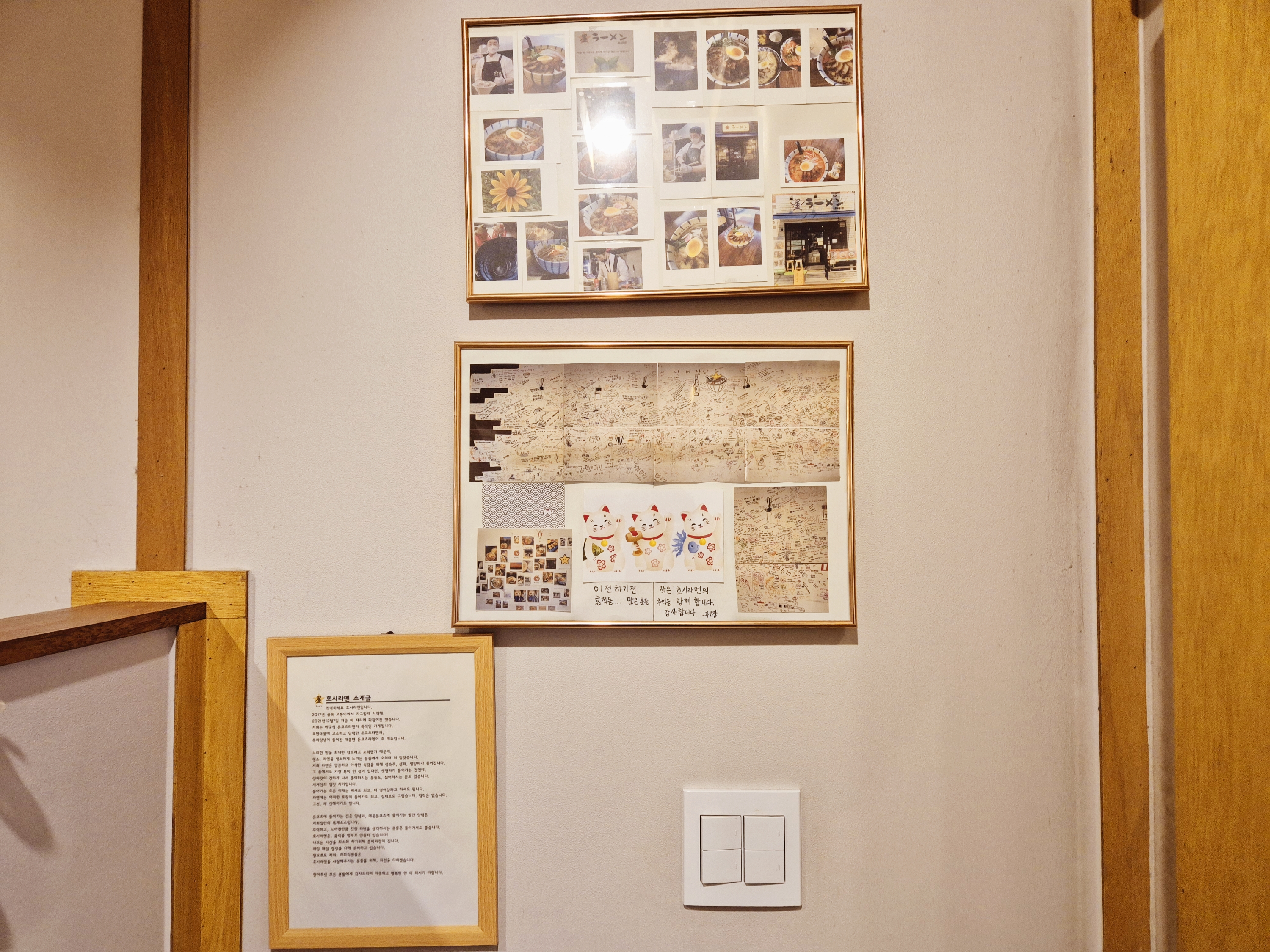 호시라멘을 설명하는 사진과 글이 붙어 있습니다. 일본식 전통 라멘보다는 한국인의 입맛에 맞게 만들었다는 글이 적혀 있었습니다. 가볍게 즐기기 좋은 식당으로 분위기도 괜찮아서 가기 좋은 식당인 것 같습니다.