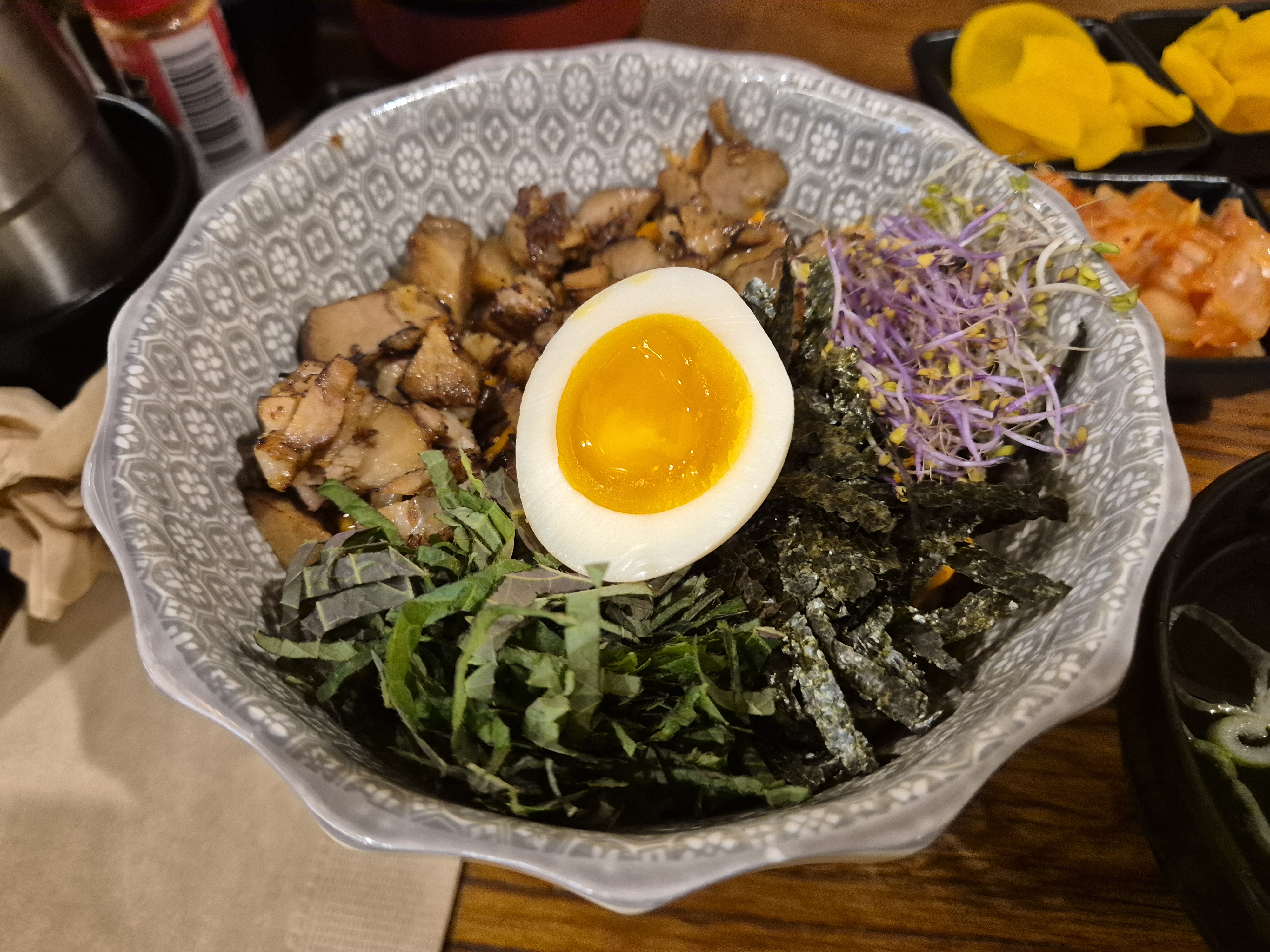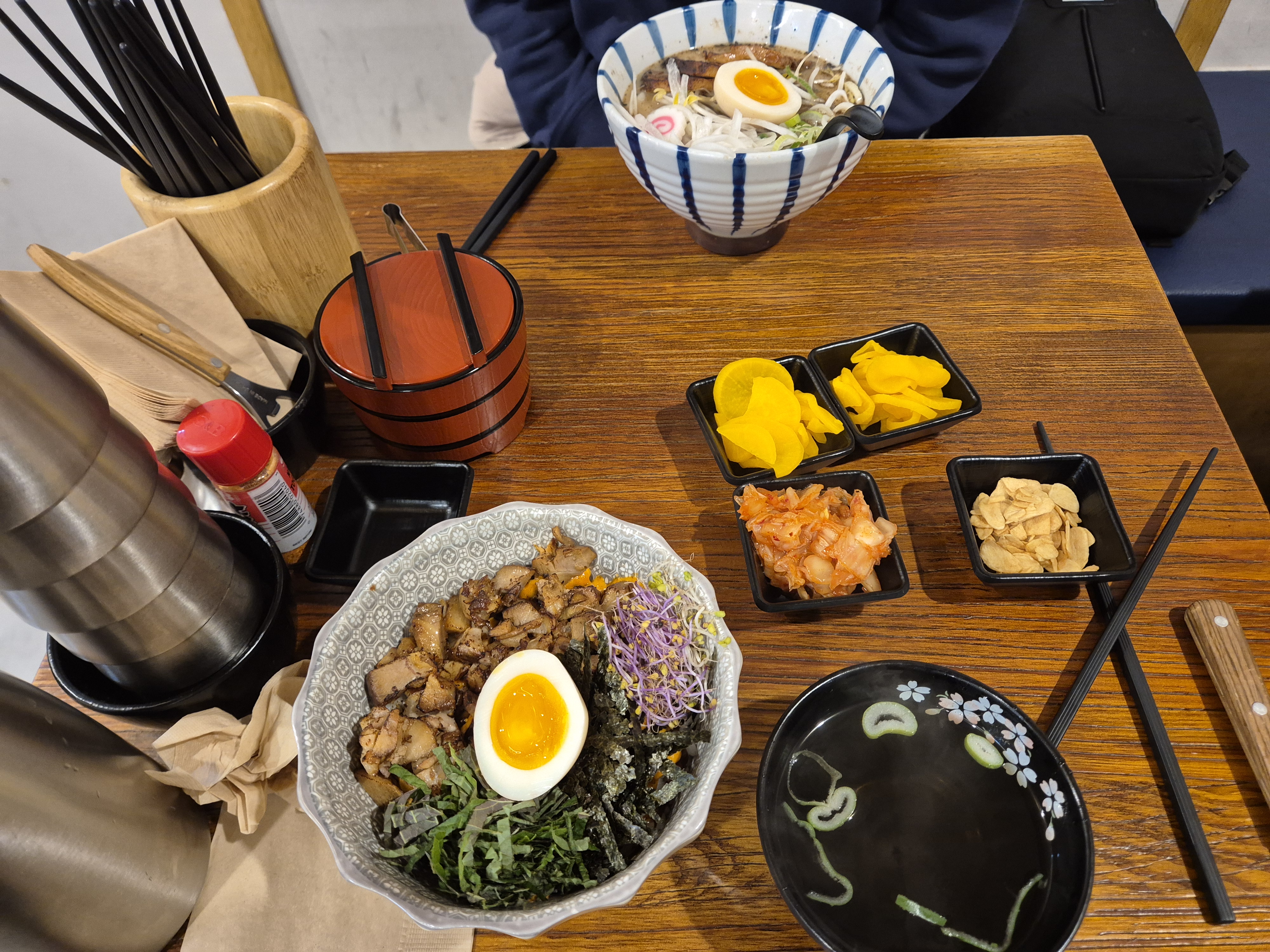 차슈비빔밥과 돈코츠라멘이 나왔습니다. 크기는 커 보이지 않았지만 먹는 데는 부족함이 없었습니다.