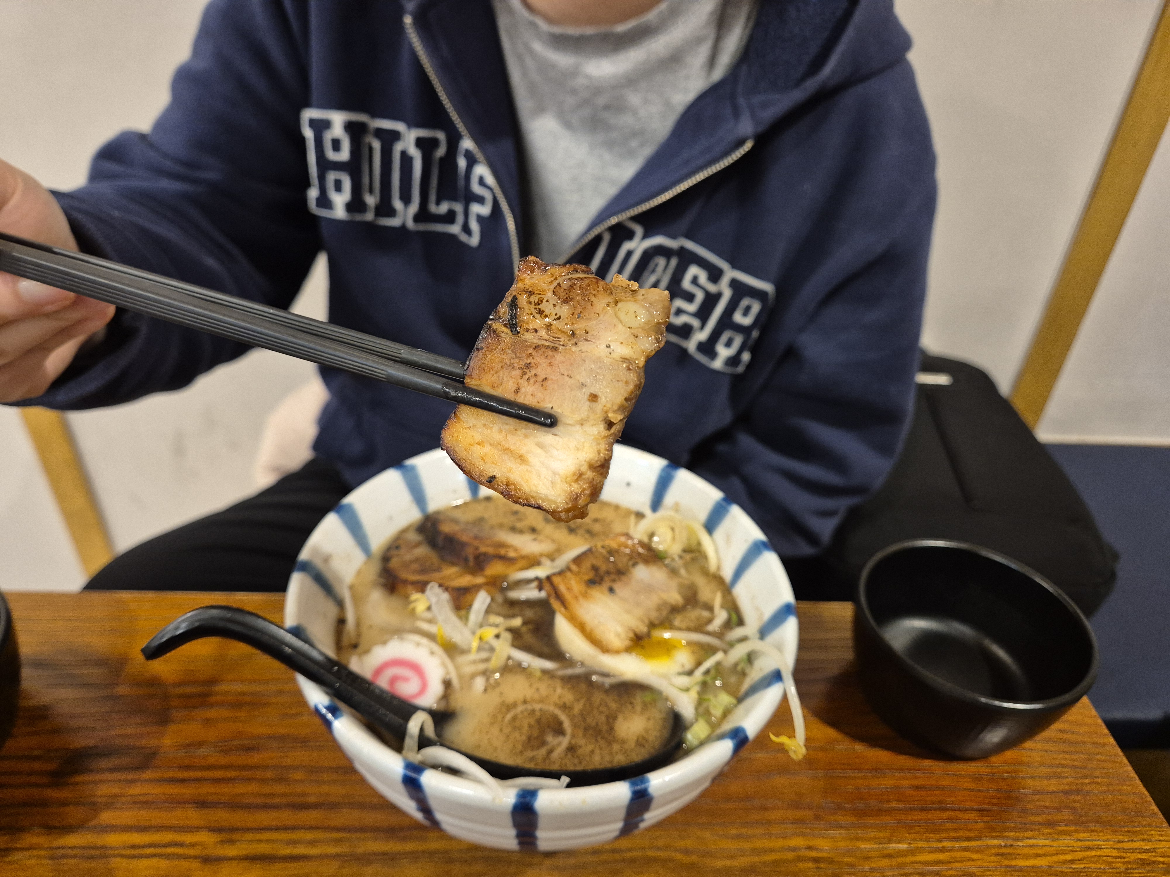 돈코츠라멘은 기본 라멘이었는데, 일본식 라멘보다는 느끼함이 덜 했습니다. 숙주가 들어가서 그런지 시원한 맛이 강하지만 숙주 향이 너무 강하게 느껴지기도 했습니다.