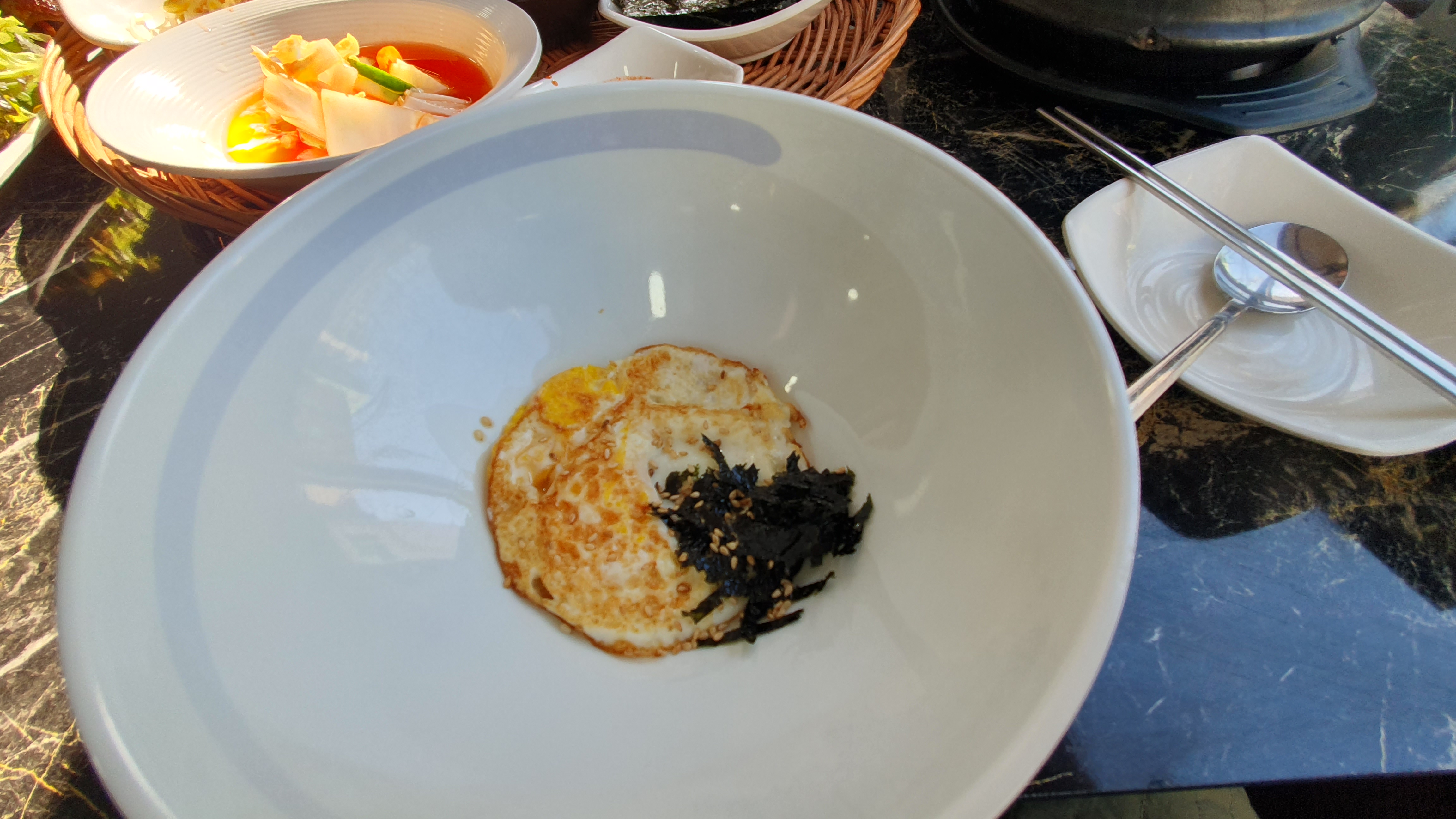 비빔밥을 만들어 먹을 수 있게 밥 그릇에 계란이 함께 나온다. 계란도 먹음직스럽다.