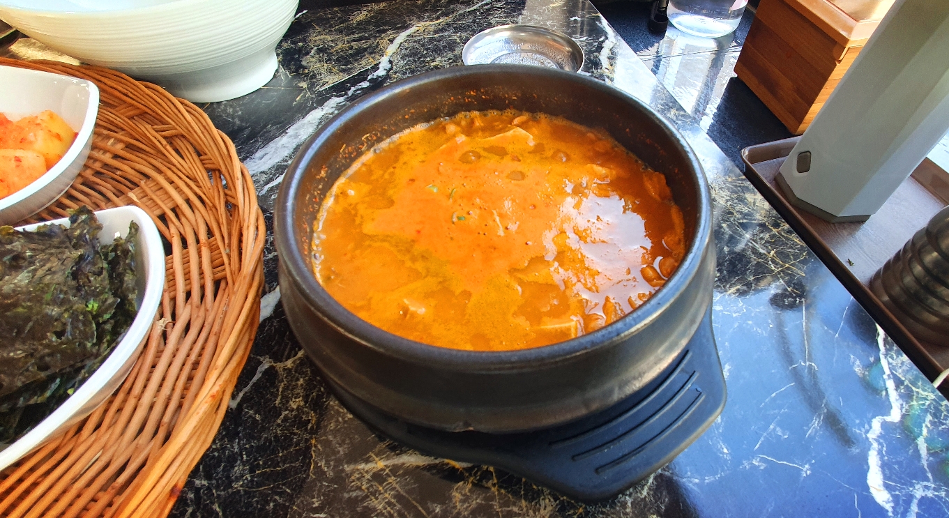 청국장이 빨간게 약간은 매운 맛이 난다. 이거야말로 진짜 밥 도둑이다. 구수한 맛과 얼큰한 맛이 난다. 그러면서도 청국장 특유의 비린내는 나지 않는다. 청국장 잘 못먹는 사람도 건강히 먹을 수 있는 음식이다.