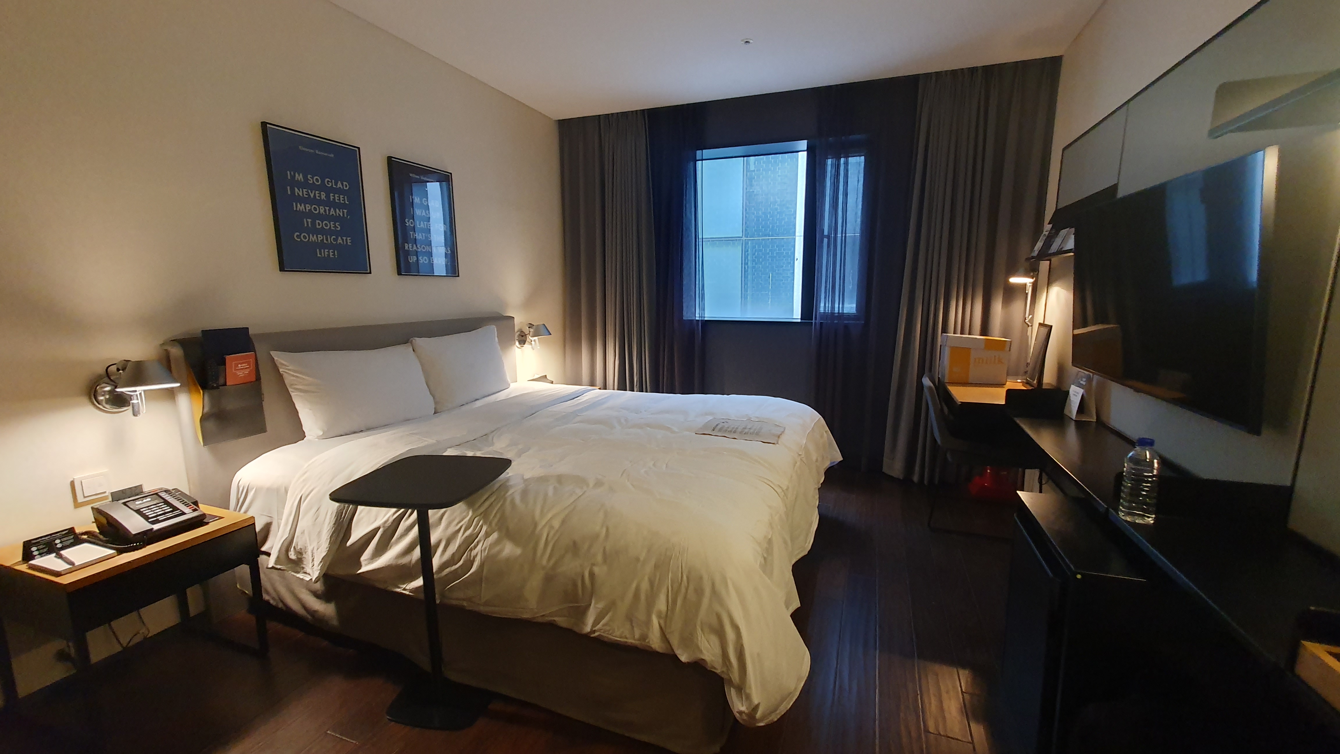 방은 모던하다. 검정, 회색, 흰색으로 깔끔하면서도 세련된 느낌이 들게 했다. 디럭스 더블 룸인데 가장 기본적인 방이다.