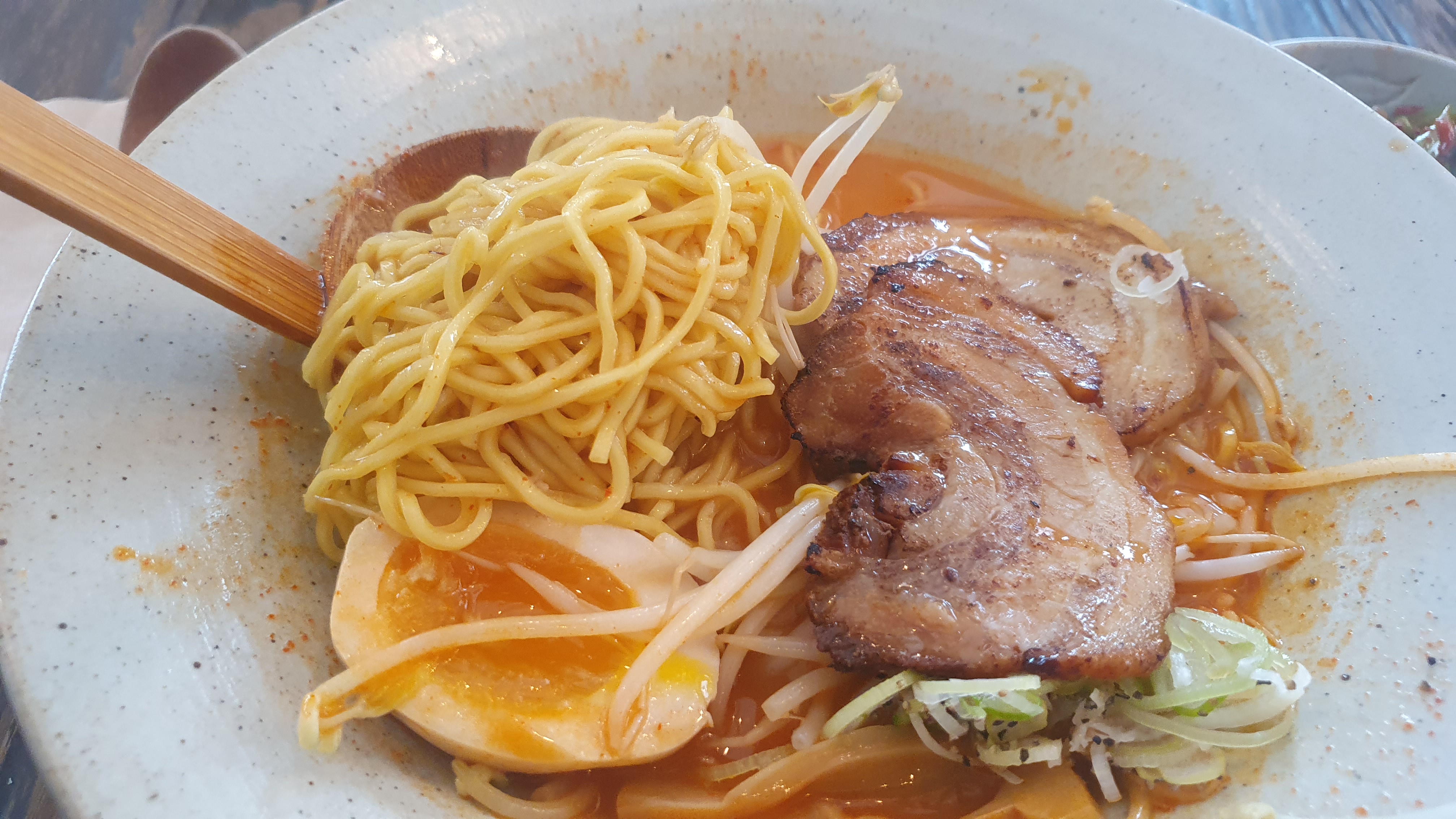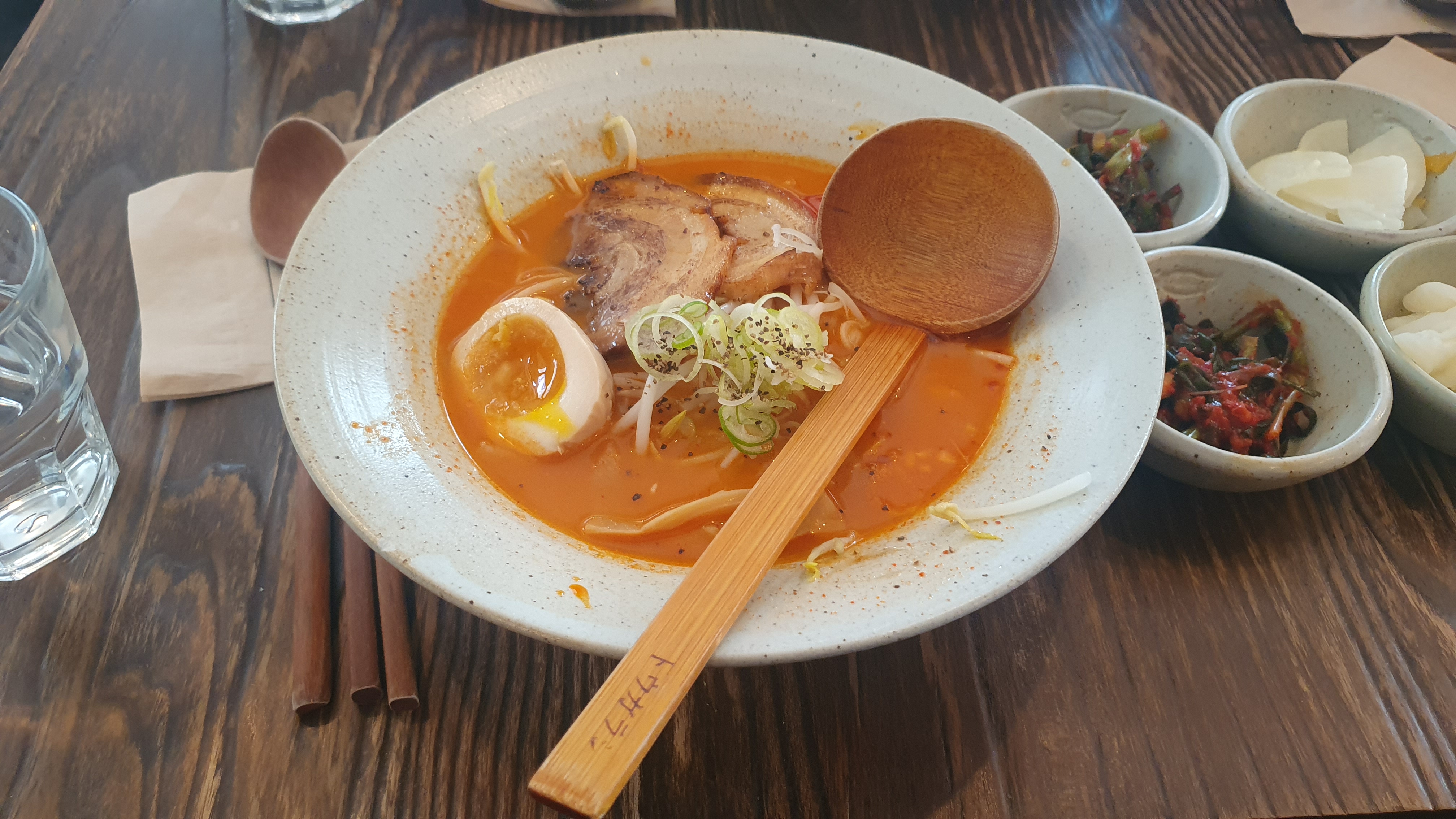 토가라시에 왔으니 토가라시 라면을 시켜봤다. 토가라시는 매운맛을 조절해서 먹을 수 있는 라면이다. 보통 매운맛으로 시켰는데도 국물이 좀 얼얼했다. 그래도 국물이 맛있어서 얼큰하게 먹을 수 있다.