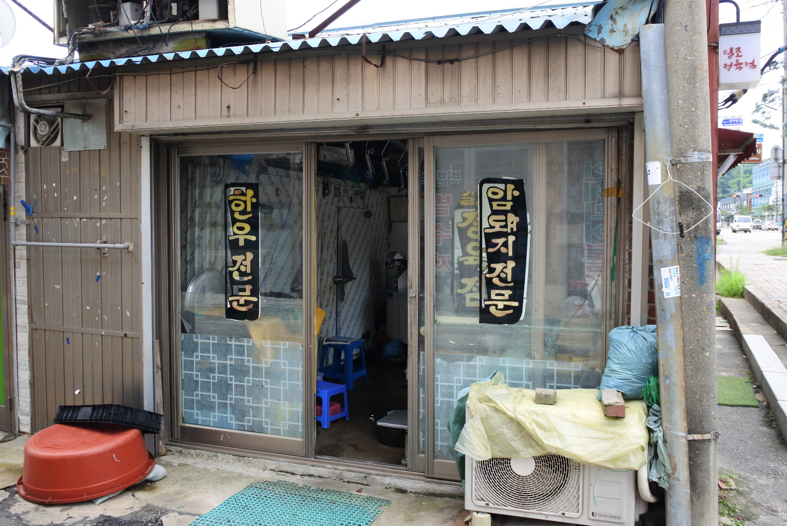 고깃집의 문에 있는 한우전문과 암퇘지전문이라고 쓰인 스티커? 도 가게의 역사를 보여준다. 그저 신기방기~~