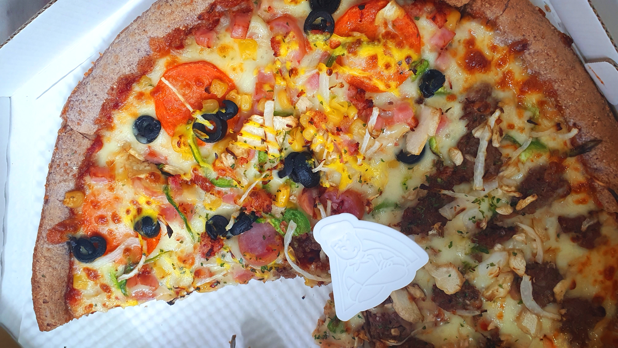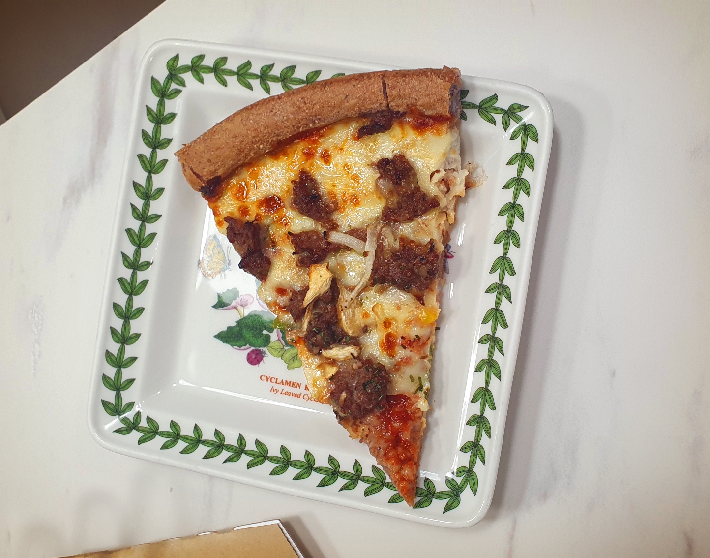 국민피자를 주문하니 콤비네이션과 불고기가 반반이다. 개인적으로는 콤비네이션이 더 나은 것 같다. 토핑도 더 화려하고 먹음직스러워 보인다. 토핑부자라고 선전하던데 부자까지는 아니고 나름 많이 주는 것 같다ㅎ
