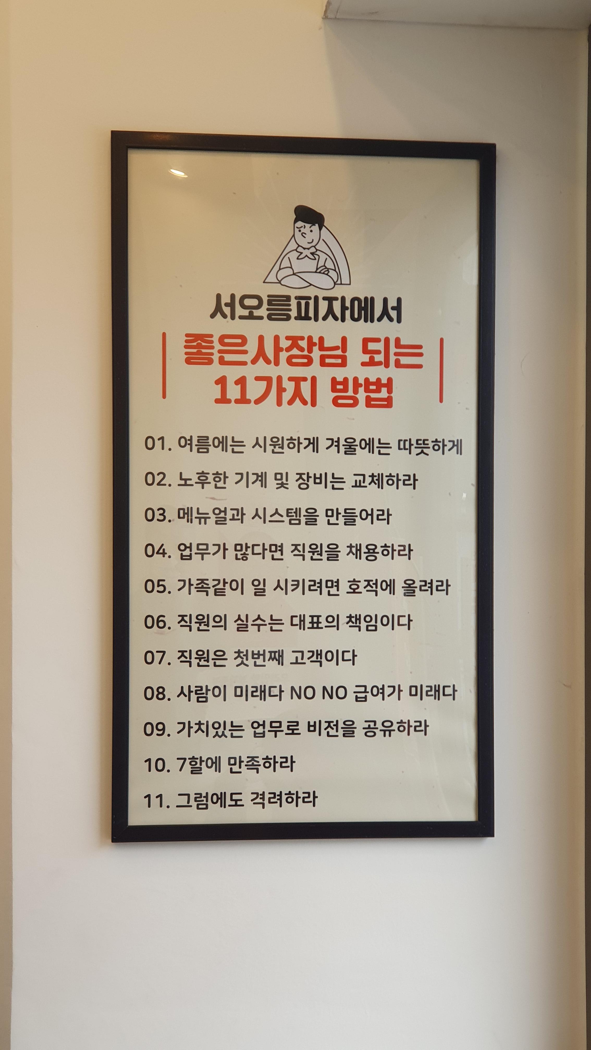 서오릉피자의 '좋은 사장님 되는 11가지 방법' 이 눈에 확 들어왔다.
